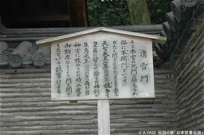 日本書紀によると、新羅の僧道行が草薙剣を盗んで新羅に逃げようとしたところ、強い風雨に遭って道に迷って帰ってきました。
