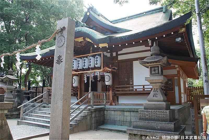 日本武尊が宮簀媛の館に滞在しているときのことです。ある夜中に日本武尊は厠(かわや:トイレ)に入りました。厠のあたりには一本の桑の木がありました。日本武尊は厠に入る前、身に着けていた剣をその枝にかけたのですが、厠を出るとそれを忘れて寝殿に戻ってしまいました。夜が明けて剣を忘れたことを思い出し、桑の木から取ろうとしましたが、その木全体が光り輝き、それは目を射るような強い光でした。それを気にせず剣をとって、宮簀媛に桑の木のことを話しました。姫は「特に木には不思議なことはありませんが、きっと剣が光り輝いていたのでしょう」と言われたので、日本武尊はまた寝てしまいました。