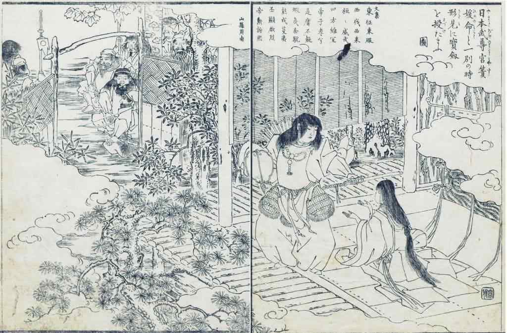 数日たち、日本武尊は宮簀媛に「都に戻ったら媛を迎えに来るから、それまでこの剣を宝物とし、床の守りとしなさい」と言われました。