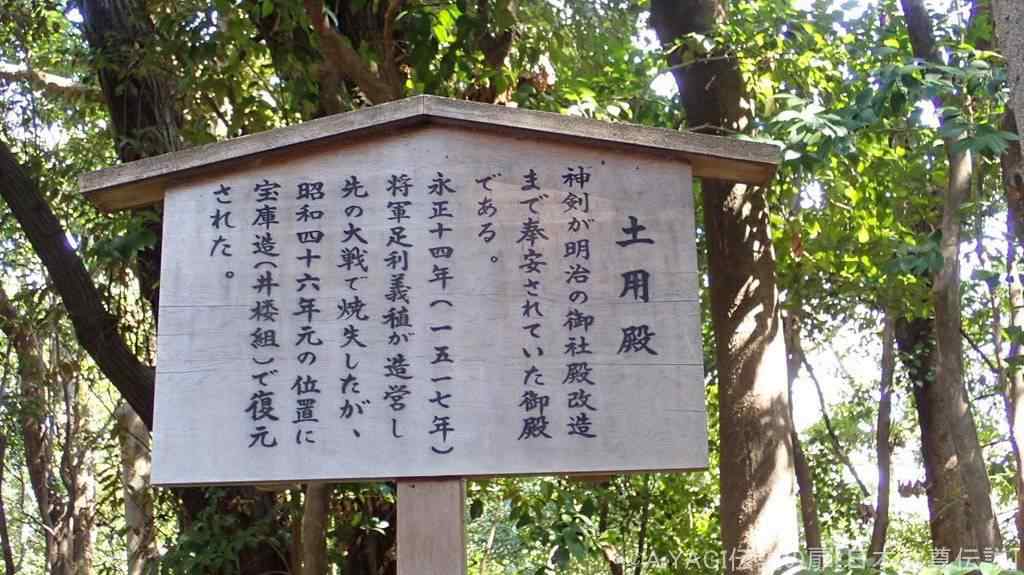 最初に草薙剣が祀られていたのは正殿と並ぶ土用殿(どようでん)です。土用殿は室町時代中頃の造営のようで、1893年(明治26年)に本宮が造られるまで草薙剣を奉安していました。