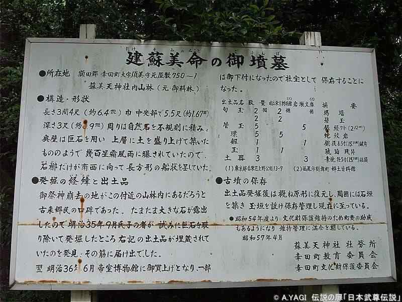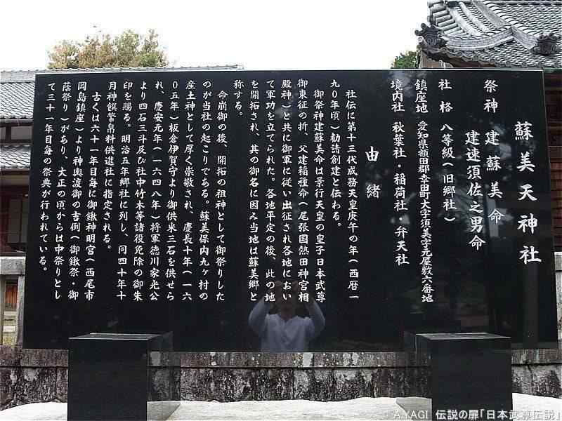 建稲種命には玉姫命とは別の女性との間に建蘇美命(たけそみのみこと)という子がいます。建蘇美命は日本武尊の東征に従軍したとされています。また、東征後は額田(ぬかた)地区の開拓に尽くしました。そのためこの地域は「蘇美郷」と呼ばれていました。