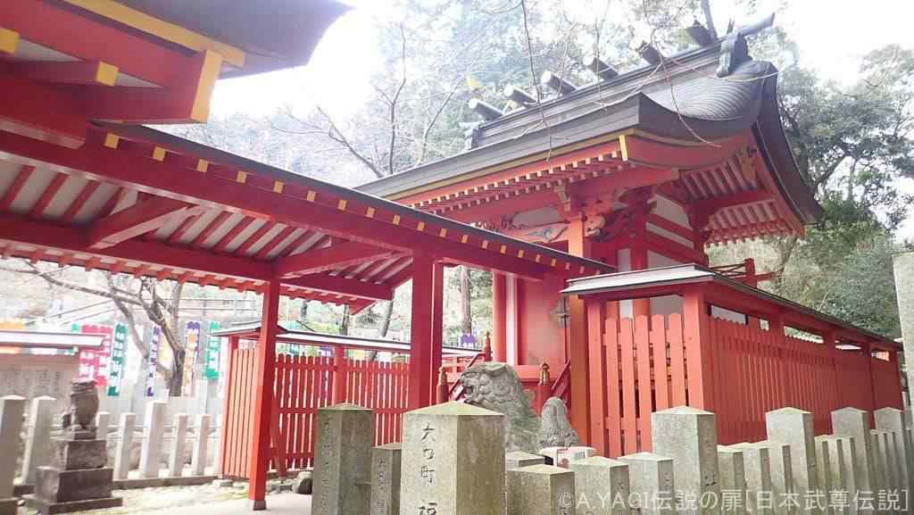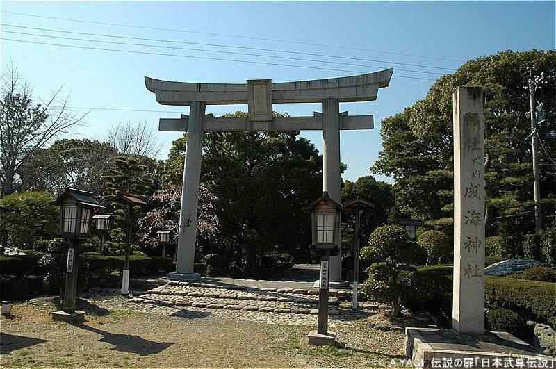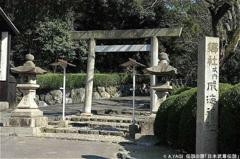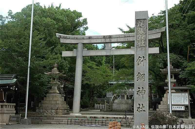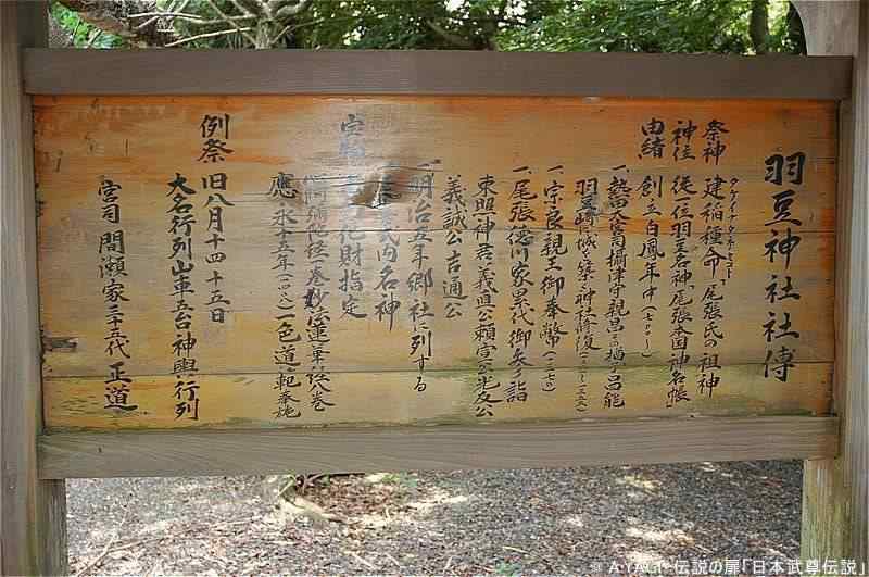 尾治針名根連命(おわりはりなねむらじのみこと)を主祭神として、建稲種命、玉姫命、大荒田命、尻調根命(尾綱根命)健多乎利(たけだおり)命-建稲種命の祖父、他を祀っています