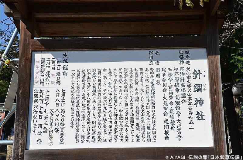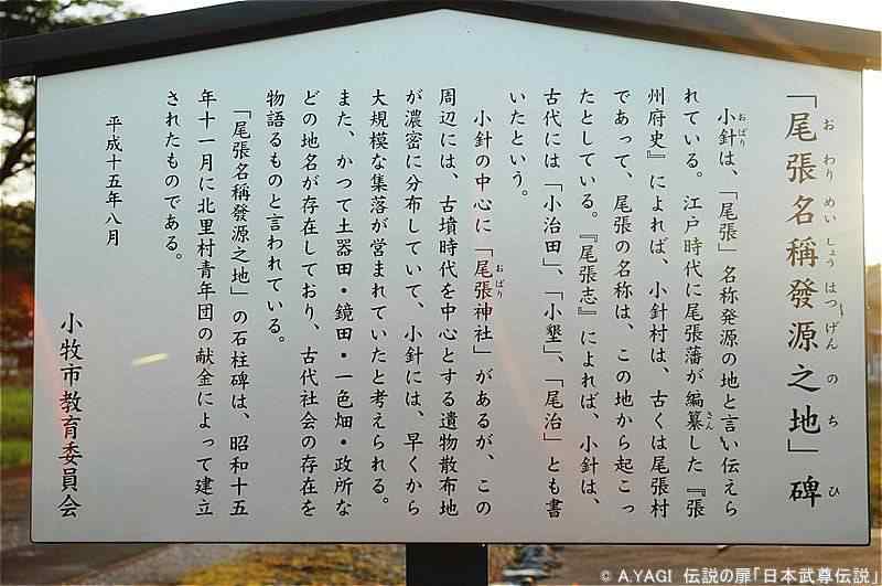 地名の小針は「おばり」→「おはり」→「おわり」を連想させます。建稲種命と玉姫命が住んでいた所とも言われています。