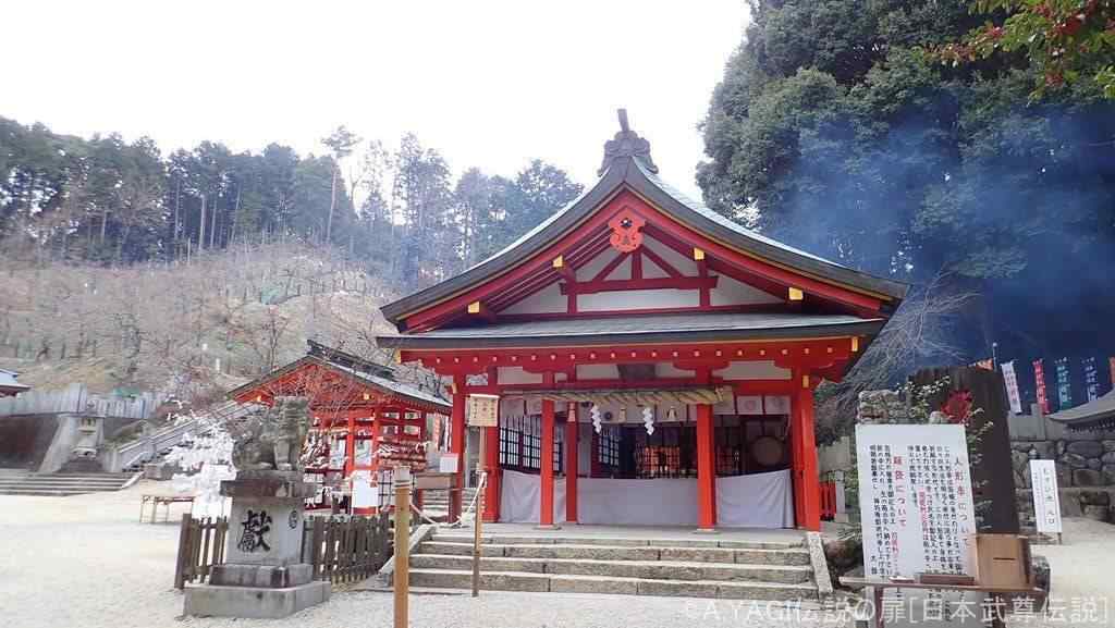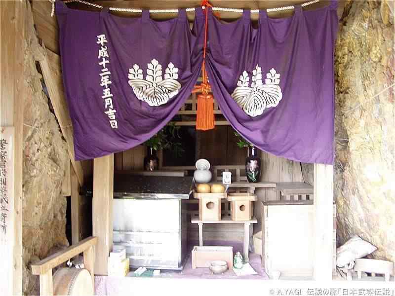 日本武尊一行が内々峠近くまで来た時、久米八腹(くめのやはら)という者が早馬で駆けてきました。久米は、東海道を通って戻っていた建稲種命が駿河の海で水死したと知らせたのです。これを聞いた日本武尊は大いに悲しみ「ああ現哉々々(うつつかな)」と嘆きました。そして、峠を少し下りたところに神社を建て建稲種命の霊を祀りました。ここは奥之院です。これが内々(うつつ)神社の由緒です。