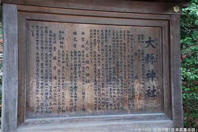 祭神は尾張開拓の祖である大縣大神(おおあがたのおおかみ)ですが、玉姫命の父大荒田命(おおあらたのみこと)も祀られています。大荒田命は五穀豊穣を願って御歳神(みとしのかみ)を祀っていました。この辺りに玉姫の実家があったとされ、建稲種命の死後、玉姫命はこの家に戻っていました。