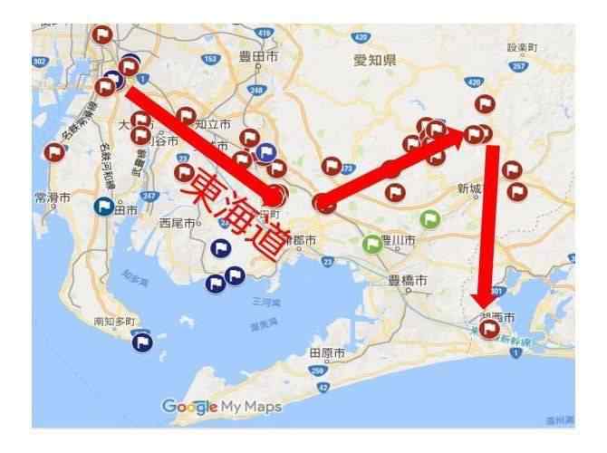 現在の国道1号、東海道を通り東に向かった日本武尊は矢作川の東に住む賊の征伐を依頼されました。