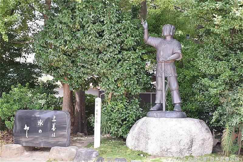法蔵寺は徳川家康が幼いころここで手習いをしていたところです。その時の遺品が多く残っています。この寺の門近くに賀勝水と呼ばれる湧水があり、戦いで傷ついた兵を治したと伝えられています。現在は水が溜まっていますが湧き出ているようには見えません。