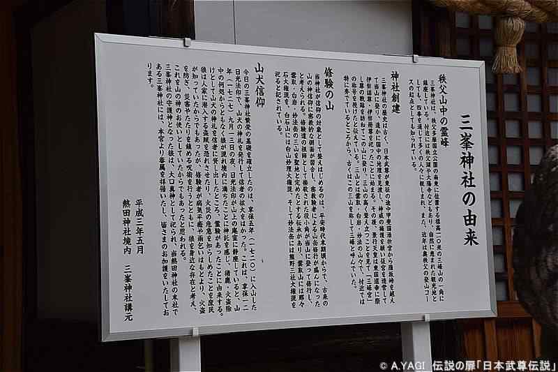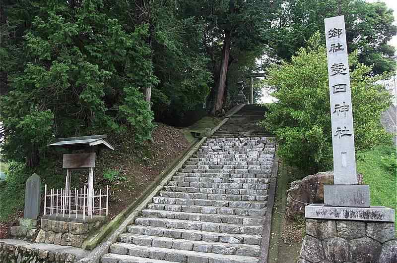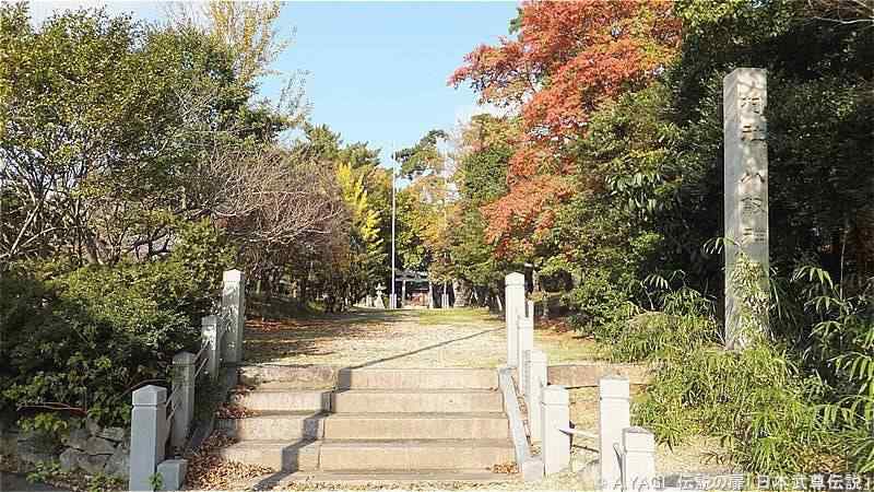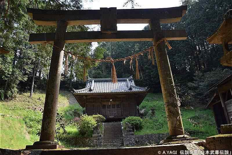 三嶽山の頂上付近にあります。戦国時代ここには城がありました。この神社をさらに登ったところに奥宮があり、日本武尊が祀られています。