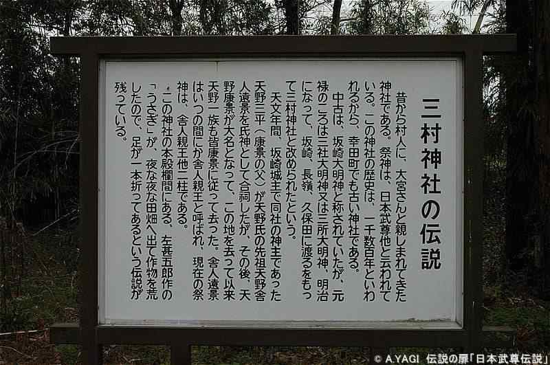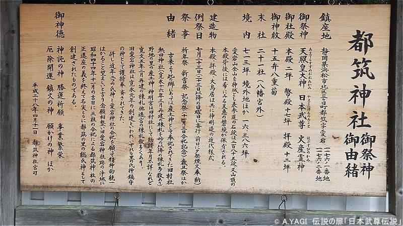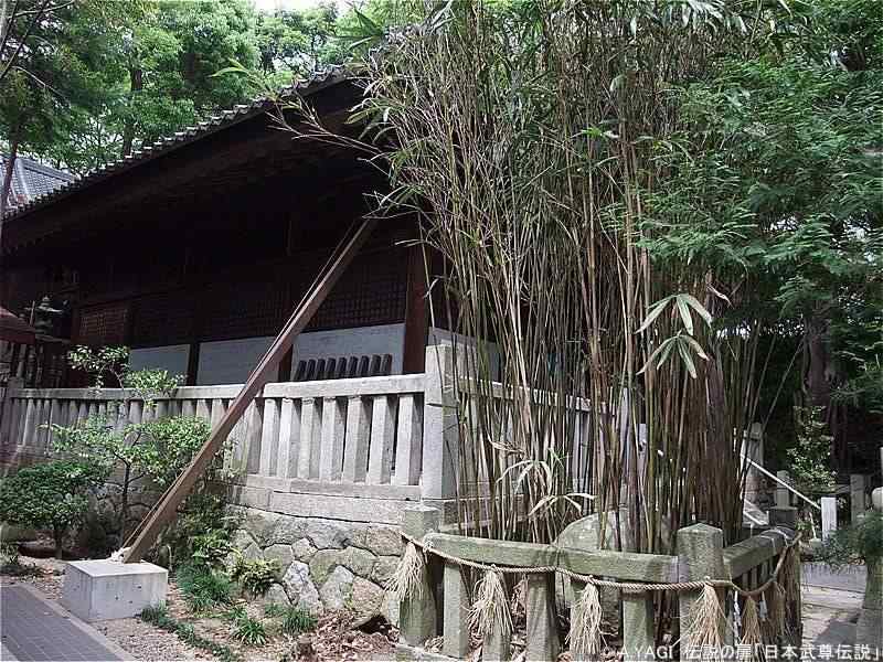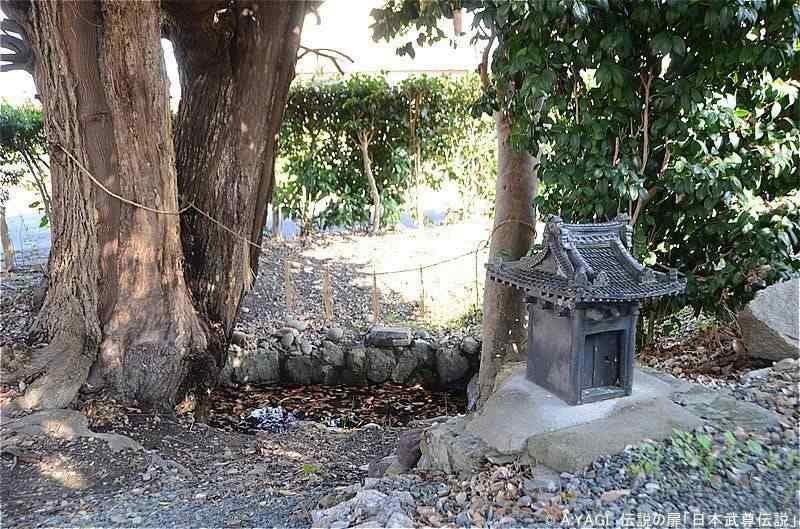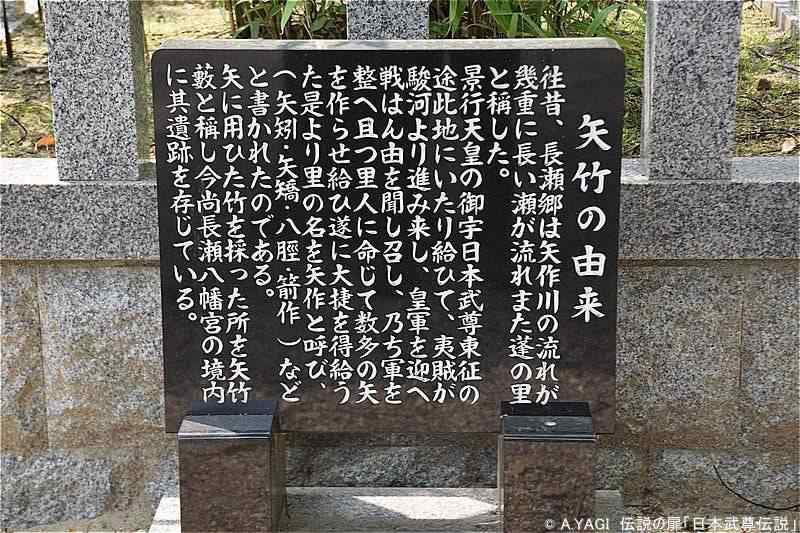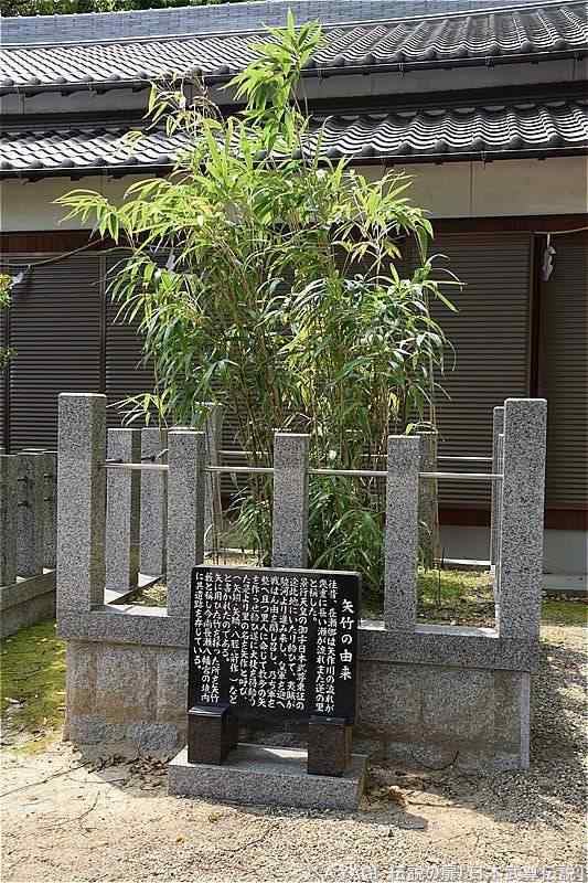 矢作神社と同じような伝承があります。駿河から来た賊が戦いをしかけてきました。そこで村人に命じて矢を作らせました。このことから地名を「矢作(やはぎ)」と言われるようになりました。この矢に使った竹はこの神社境内にあり「矢竹藪(やたけやぶ)」として伝えています。