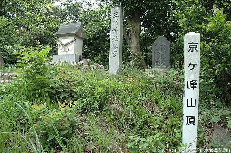 標高170.1mの京ケ峯の頂上にあります。ここに立って京(みやこ)の方を見たと言われています。「日本武尊傳説磐境之碑」や「京ケ峰雲母採掘抗跡」の説明板がありました。