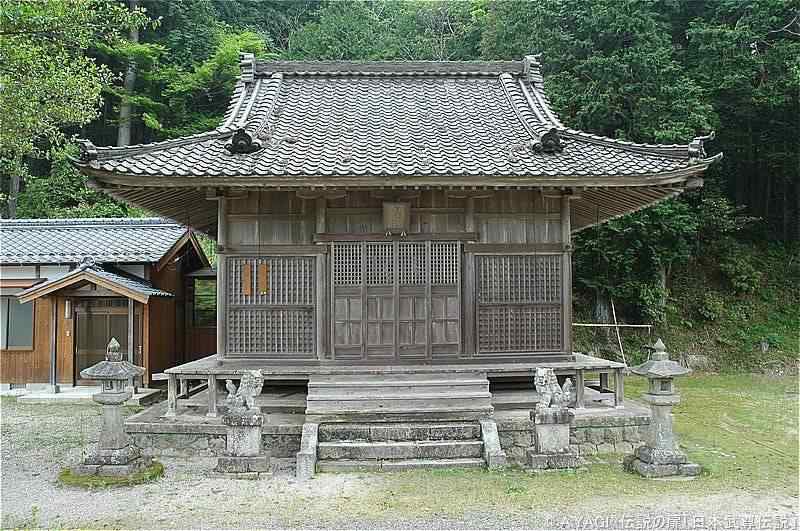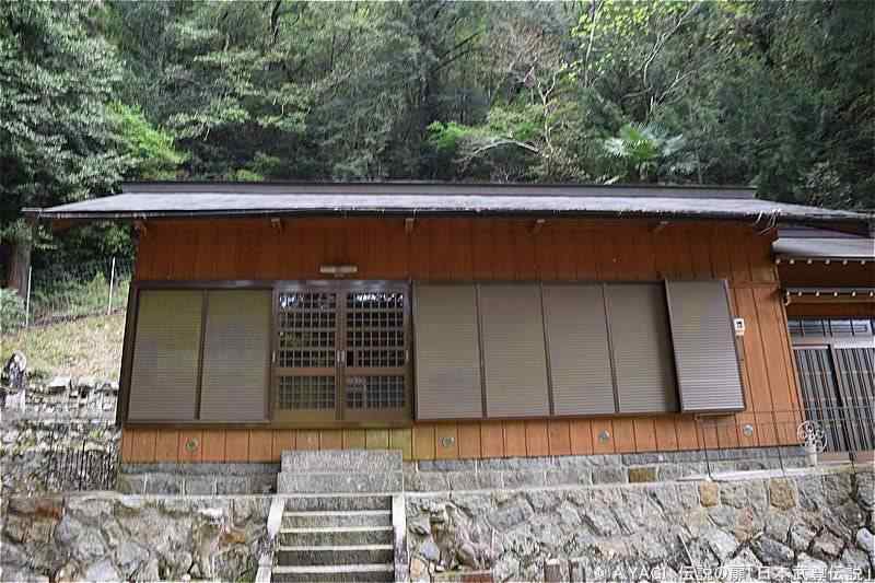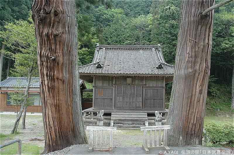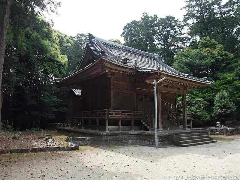 日本武尊他を祭神としています。日本武尊の妃(詳細不明)が皇子を出産しこの地に留まったという伝承があります。ここに祀ったのは足鏡別王(『古事記』)らしく、すると妃とは山代之玖玖麻毛理比売(やましろのくくまもりひめ)となるようですが不明です。この辺りには皇子田、皇子ヶ入などの地名が残っています。