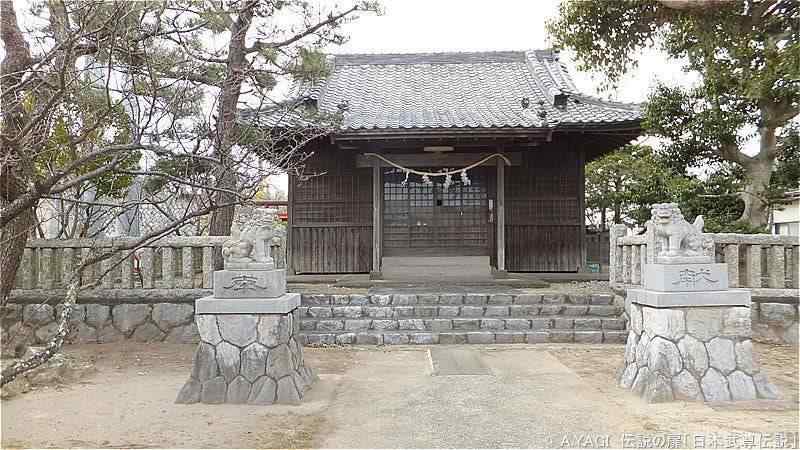 「創建は明らかでない。明治5年10月村社に列格し同24年12月と40年1月の両度拝殿を改築する。同40年10月26日指定社となる。同42年4月29日字寒風根十番地無格社水神社を本社に合祀した。古老の伝によれば日本武尊御東征の折に榎の大木あり、その下にて休憩されその所に小祠を建て祀ると謂ふ。昭和20年1月の三河地震により本殿が倒れ、昭和20年再建。昭和34年伊勢湾台風の被害により破損せし渡殿、社務所を改築。」