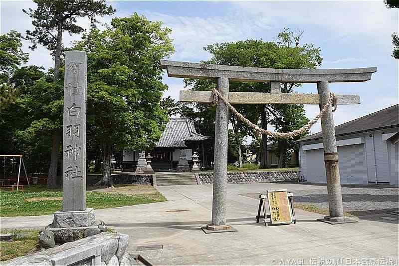 日本武尊を祭神として祀っています。東海道沿いにありこの前を通過したと推測しています。神社はその縁で創建されたのではなく、室町時代に尾州白鳥神社を勧進したと記録されています。