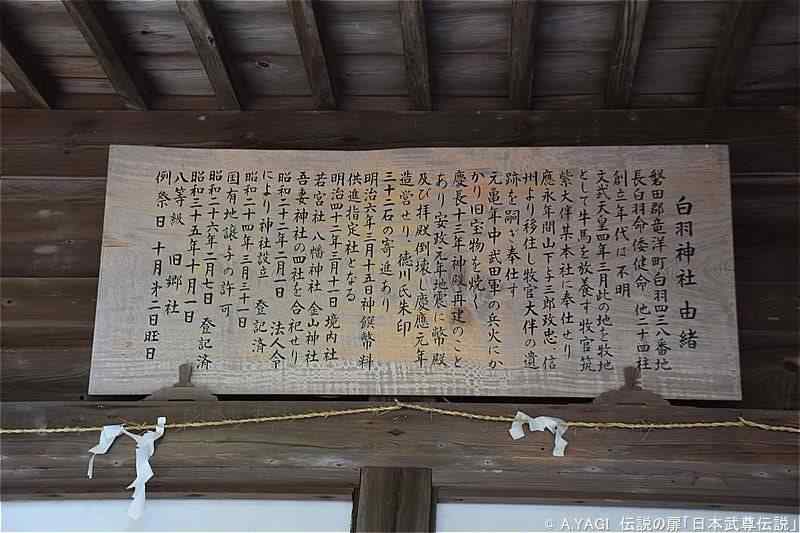 地誌ではこの地に日本武尊を祀る白鳥神社が建てられたのは平安時代のこととされています。また、戦国時代にはこの辺りが武田氏の領地であったことから戦渦に巻き込まれ社が焼失しましたが、その後再建されました。さらに室町時代から江戸時代にかけて白鳥神社の分祀があり、この村に多く存在することになったと言われています。