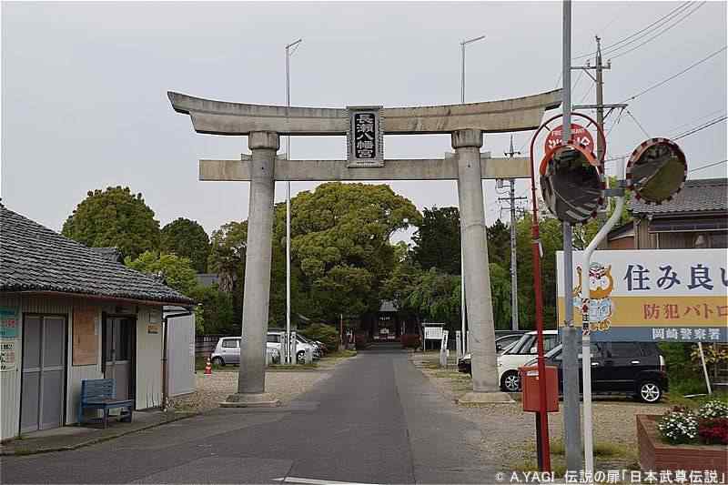 高岩という所で賊を討つための矢を作らせたところ、風に吹かれて1本の矢がとび、菅生川(現在の乙川)に流されました。この矢を御霊代として戦いの後に伊勢大神を祀ったとされる岡崎市最古の神社です。高岩は現在の満性寺(岡崎市菅生町字元菅57)辺りと言われています。