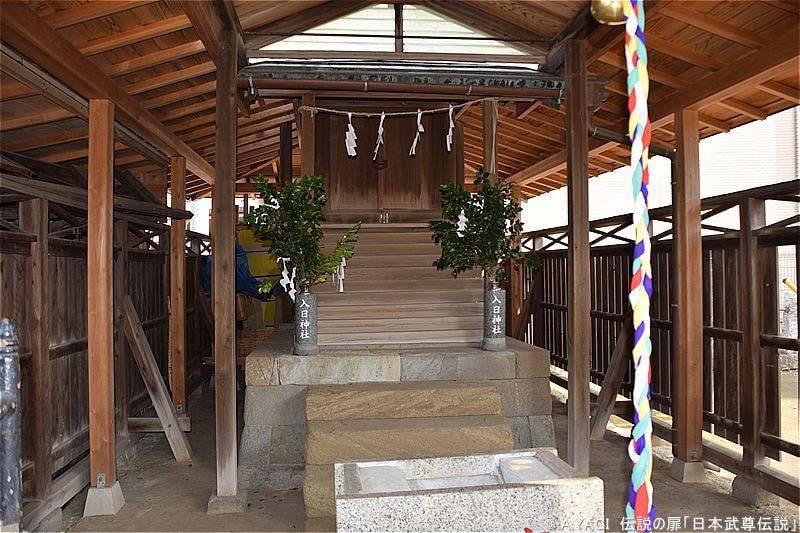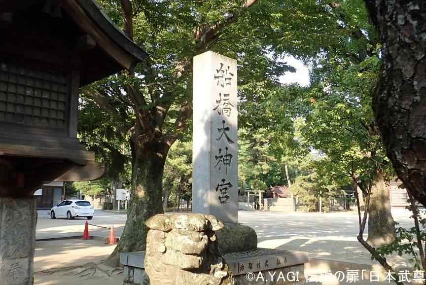 千葉街道(国道14号)の「式内元宮入日神社 入口」と書かれた柱から階段で下りたところに神社があります。社伝によるとここは船橋大神宮が現在地に遷座した跡地に建てられたので、船橋大神宮の元宮と言われています。境内の石碑には「日本武尊が東夷御征討の砌り伊勢湾方面より海路を利用し先ず上総の国に上陸 次いで軍団は上総の国を出帆せられ下総の国に入るに及んでこの地に上陸された」と書かれています。地名の海神はその怒りから弟橘媛が海に身を投じることになったことと関係があるのかもしれません。