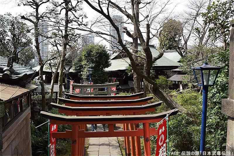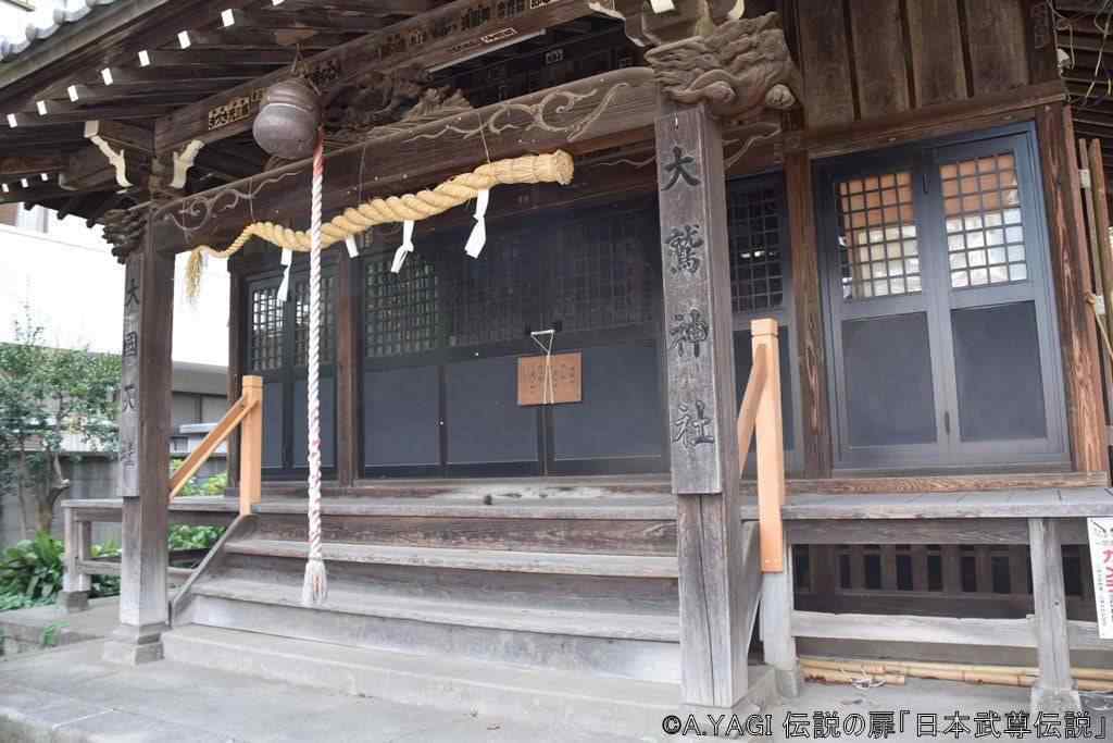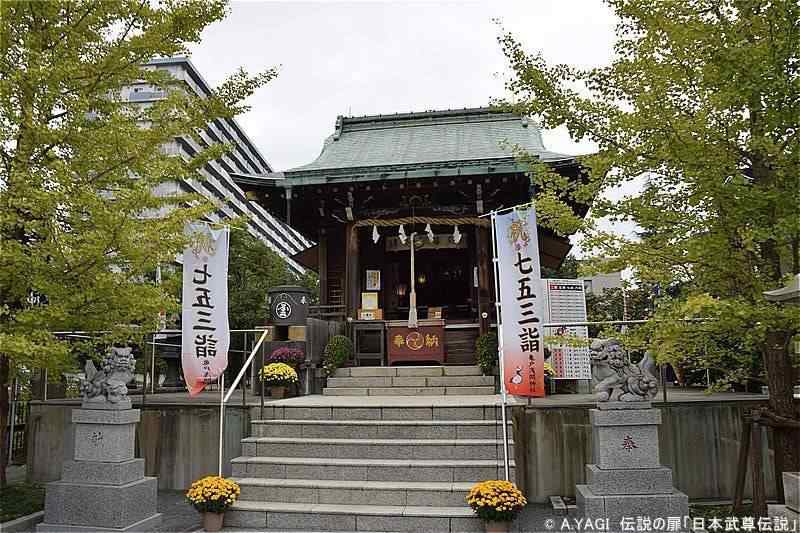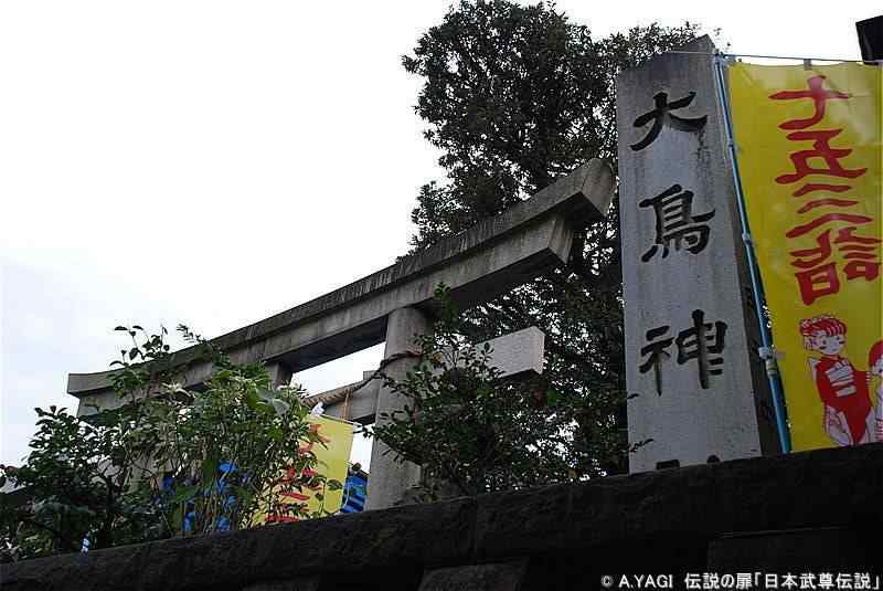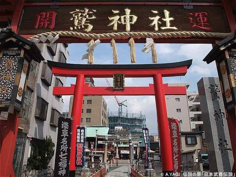 日本武尊が東夷に行く時、ここで戦勝祈願をしました。東征後、社前の松に熊手をかけて戦勝を祝ったと言われています。その日が11月酉の日だったため、酉の祭を開催するようになりました。