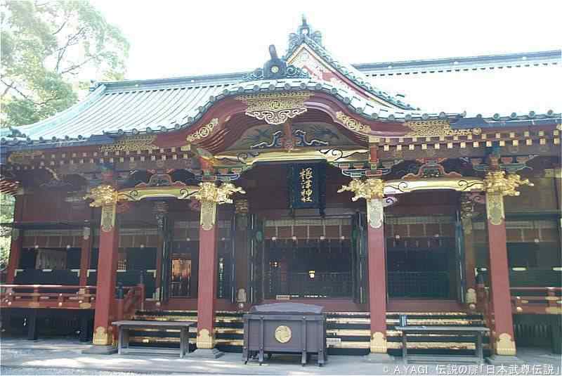 日本武尊が湯島に滞在しました。村人が妃の弟橘媛を祀る祠を建てました。