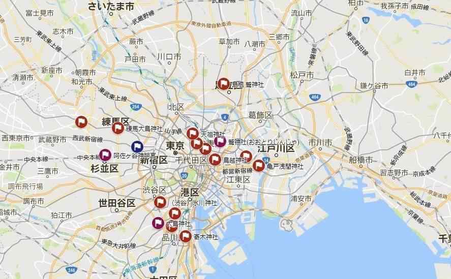 東京都内の伝承地や日本武尊を祭神とする神社はとても多くあります。東京都にある神社の社伝を調べると、日本武尊は奥州への東征に行く前に立ち寄った、あるいは奥州からの帰路に立ち寄った、また、往路復路で立ち寄ったと伝わっている社があることがわかりました。