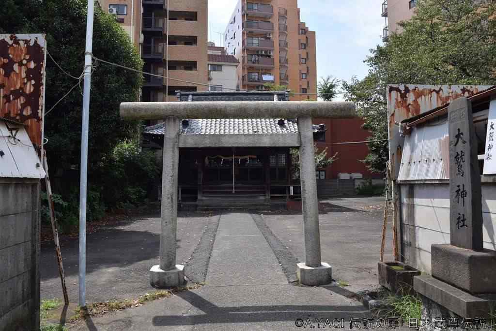 日本武尊は東征に行く際に神社の近くの海岸に船で着きました。そのため、この地に日本武尊を祀り浮島明神としました。その後江戸時代に島根村の鎮守として大鷲神社と呼んでいました。現在の位置からは想像できませんが、当時はこの神社近くに海岸がありました。浮島の名はそこからついたのでしょう。神社の南にその痕跡が残っていると境内にある案内板に書いてありました。