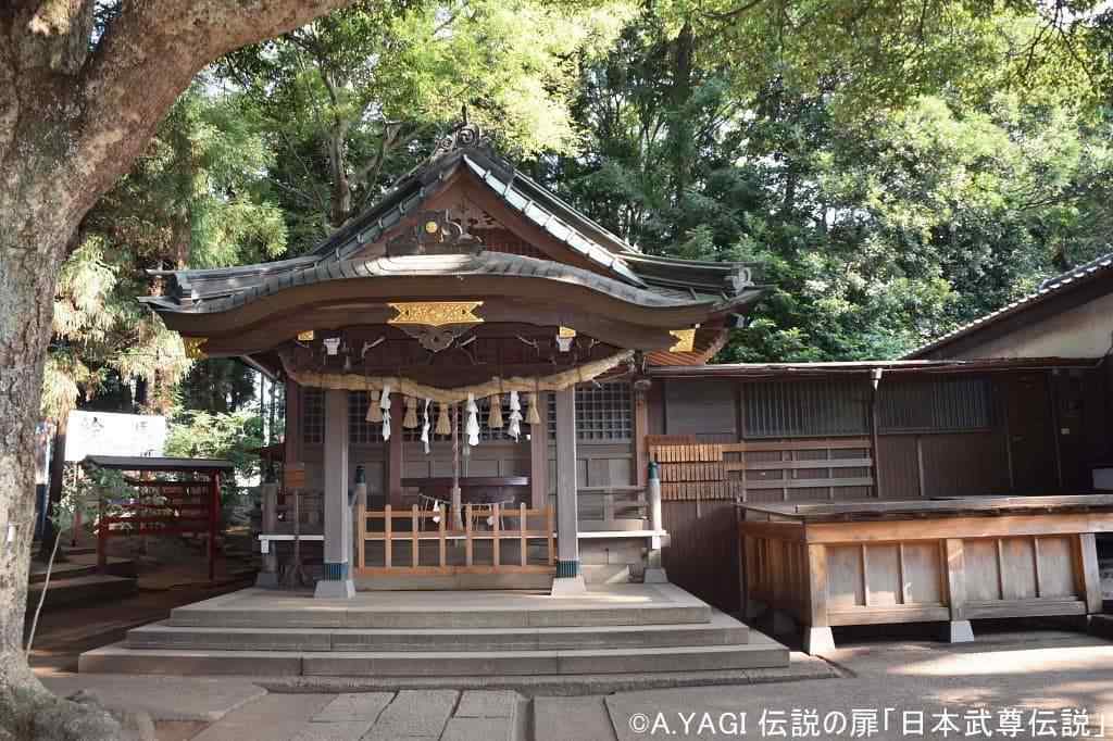 日本武尊は素盞嗚尊を勧請し、丘に上がって武蔵野国一宮(埼玉県氷川神社)を遙拝しました。