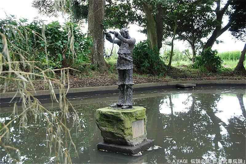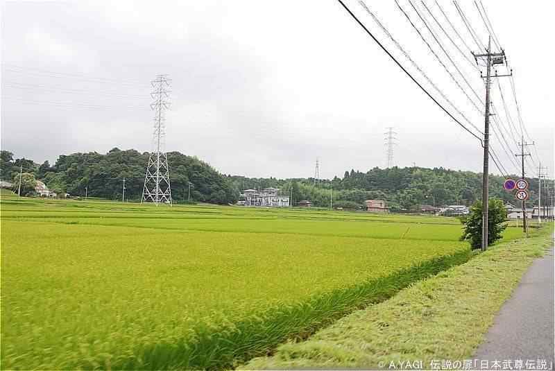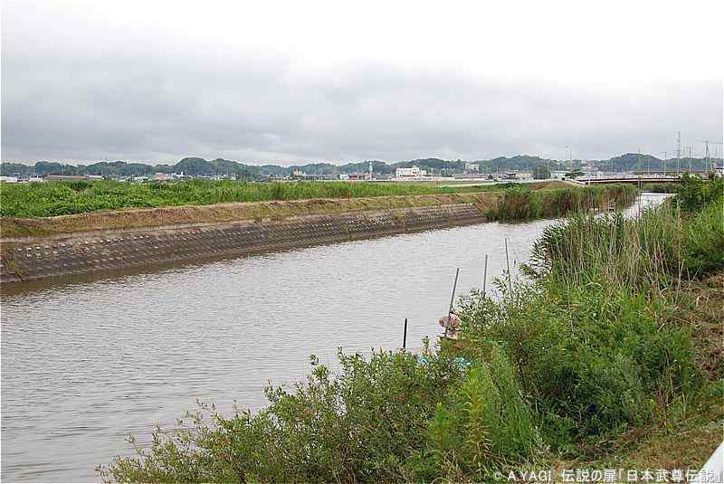 この丘を下りて大益河(おおやがわ)に出て、小舟に乗って川を上られたとき、棹梶(さおかじ)が折れてしまいました。そのため、この川を無梶河(かじなしがわ-梶無川)といいます。茨城と行方二郡の境を流れている川です。