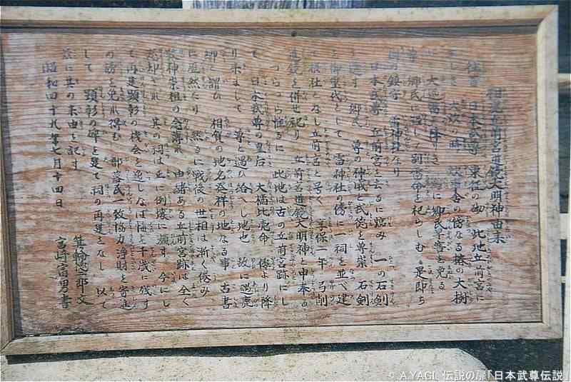 景行天皇40年(西暦111)10月、日本武尊、伊勢神宮の荒祭宮である礒宮を此の地へ移祀したと伝えられています。