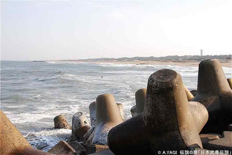 昔、大蛇がいて、東の海に行こうとして浜に穴を掘って通ろうとしたけれど、蛇の角が折れてしまいました。そこから名付けられました。また別の言い伝えでは、倭武天皇がこの浜辺にお泊りになったとき、お食事をお出しするのに水がありませんでした。そこで鹿の角で地面を掘ってみたところ、角が折れてしまいました。このことから名付けられました。