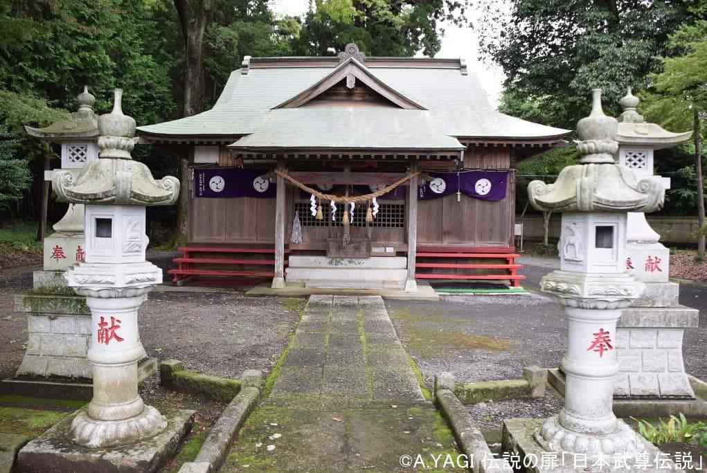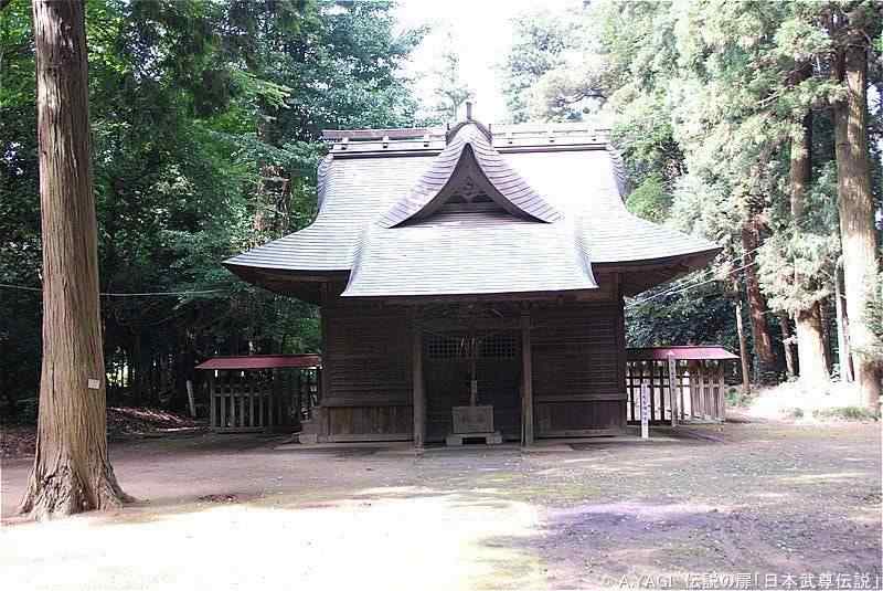 祭神は伊弉諾命 (いざなぎのみこと:筑波男大神と同神)、大国主神 (おおくにぬしのかみ)、素戔嗚尊 (すさのおのみこと)、瓊々杵命 (ににぎのみこと)、大宮比賣尊命(おおみやひめのみこと)、布留大神 (ふるのおおみかみ)と常陸国諸神です。