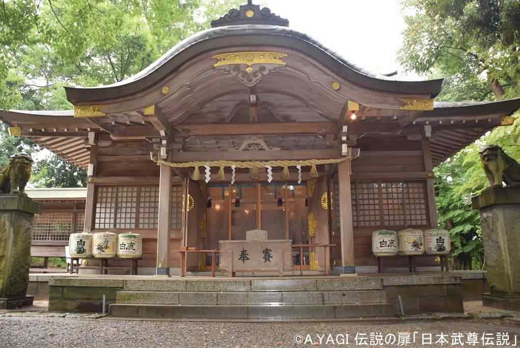 日本武尊が東征の際ここに立ち寄り、東の鹿島、南の香取、西はるかに筑波山、北に北浦に接したこの景勝地にて戦勝祭を行い、武運長久を祈願されたと伝わっています。特に日本武尊の命に従い東征に功績のあった三十番神(さんじゅうばんしん:30の神々)を褒め称えられました。村人はその跡地に社殿を建立し日本武尊と三十番神を祀りました。