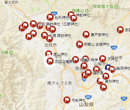 軍団の休息地でもあった酒折宮の候補地は甲府市内に2社あります。