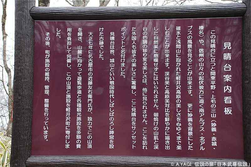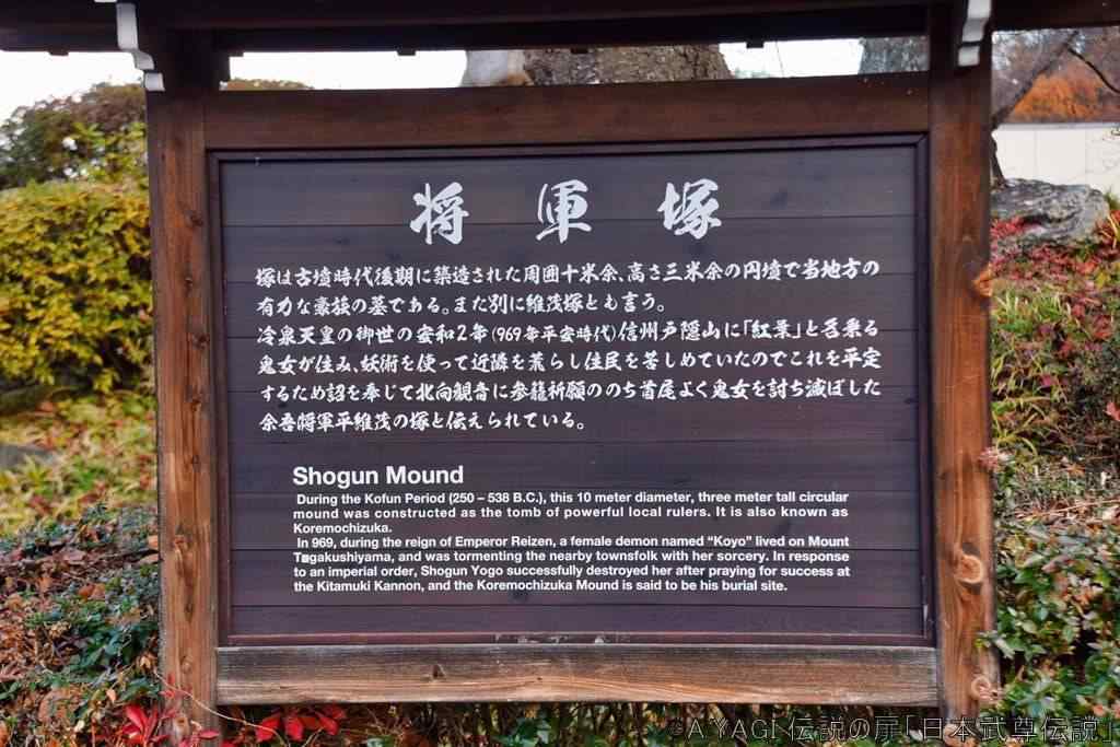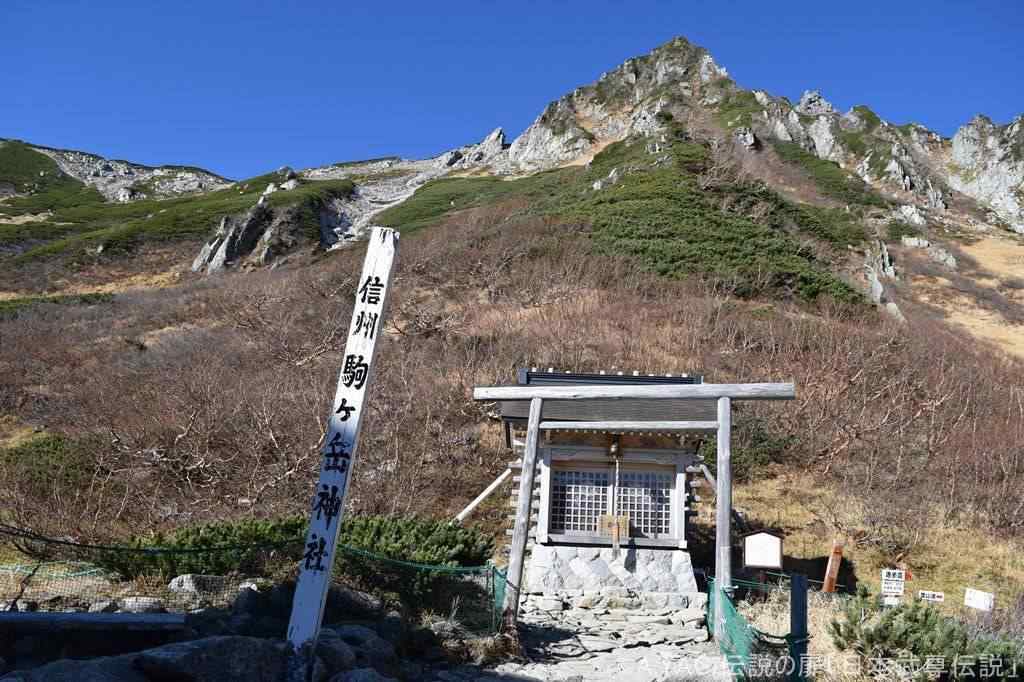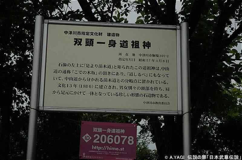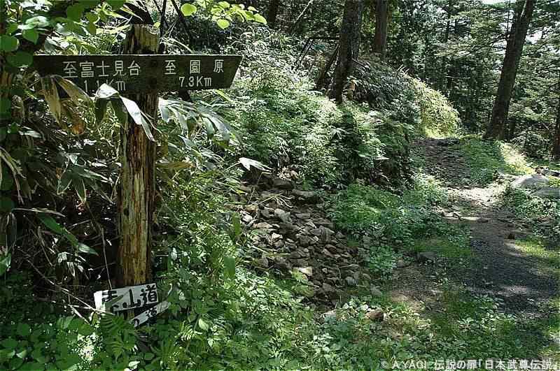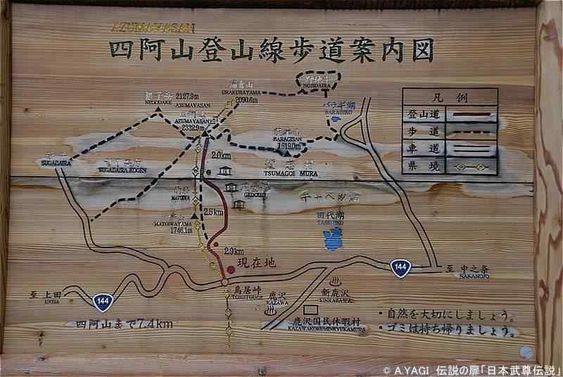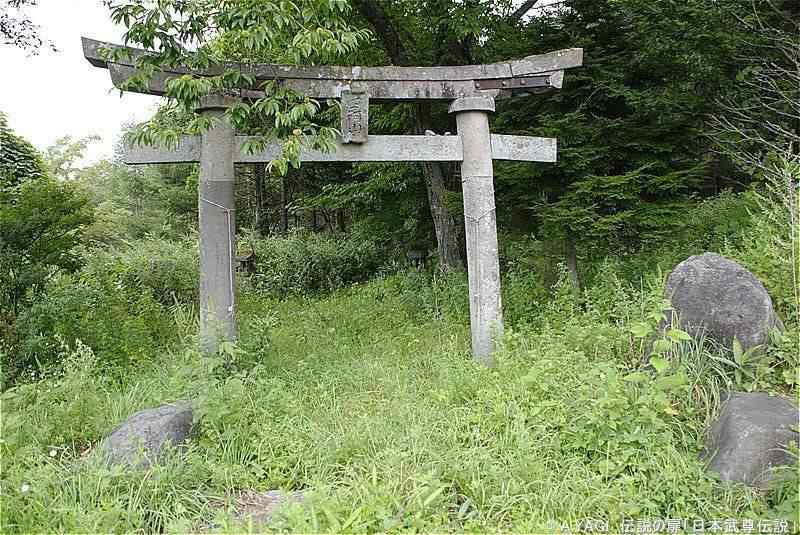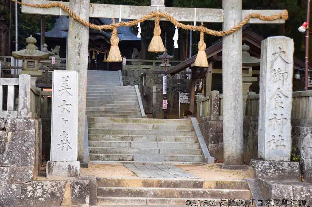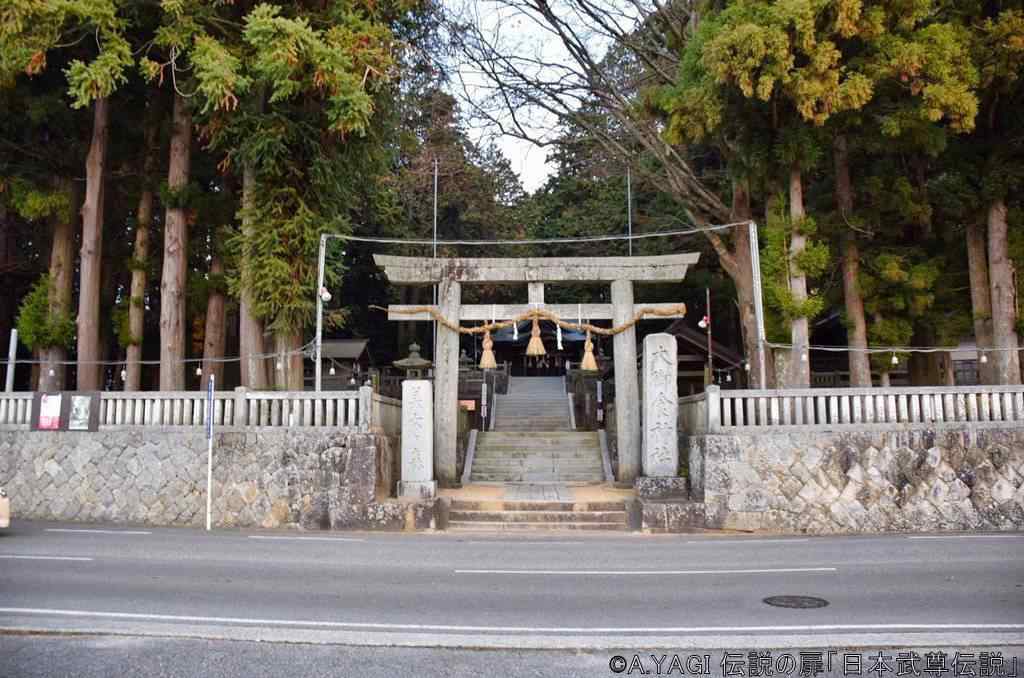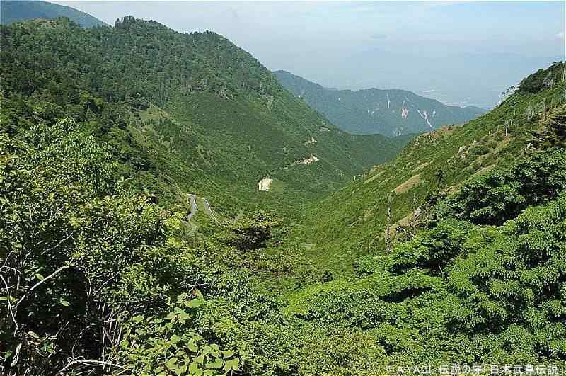 ここも阿智神社と同様に、山中で道に迷っていた日本武尊の前に白い狛(いぬ:犬)が現れて道案内をしたので無事に美濃に出ることができたという伝承があります。それまで信濃坂を越える者は、神の毒気により病になってしまいましたが、この後は、山を越えるとき、蒜を噛んで体や牛馬に塗ると毒気にあたらなくなったと言われています。この信濃坂は神坂峠のこととしています。