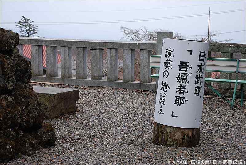 日本武尊は弟橘媛(おとたちばなひめ)を思い出すことがありました。碓日峰に登り、東南の方を見ながら3回嘆いて言いました。