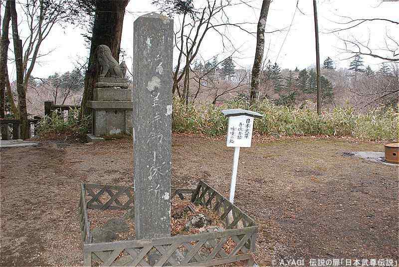 日本武尊は群馬県と長野県境の「碓日嶺 『紀』」から雲海を眺め走水の海に身を投じた弟橘媛を偲んで「吾妻はや」と嘆いたと伝えられています。この神社のある嬬恋という地名もその故事によるものです。標高2354mの四阿山(あずまやさん)も吾妻山、吾妻山であり、やはりこの故事によるものです。走水はここから見て東にあり、東(あずま)の地です。