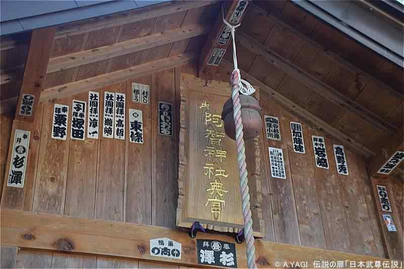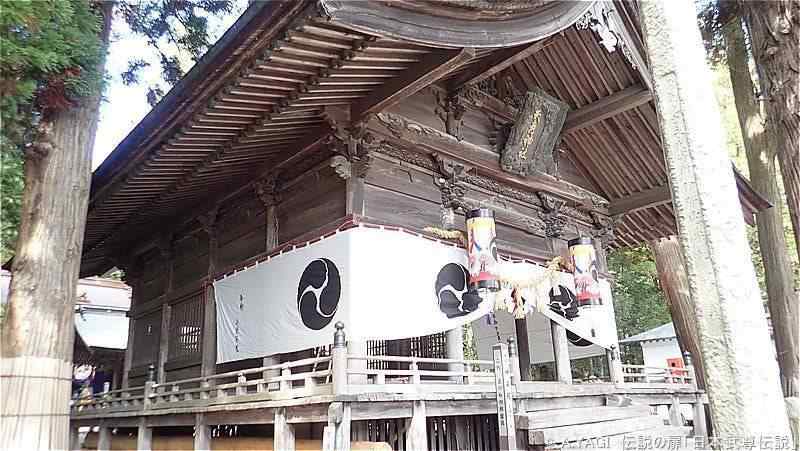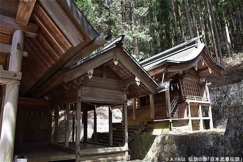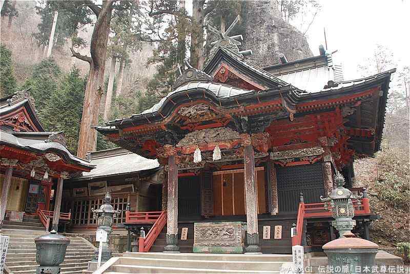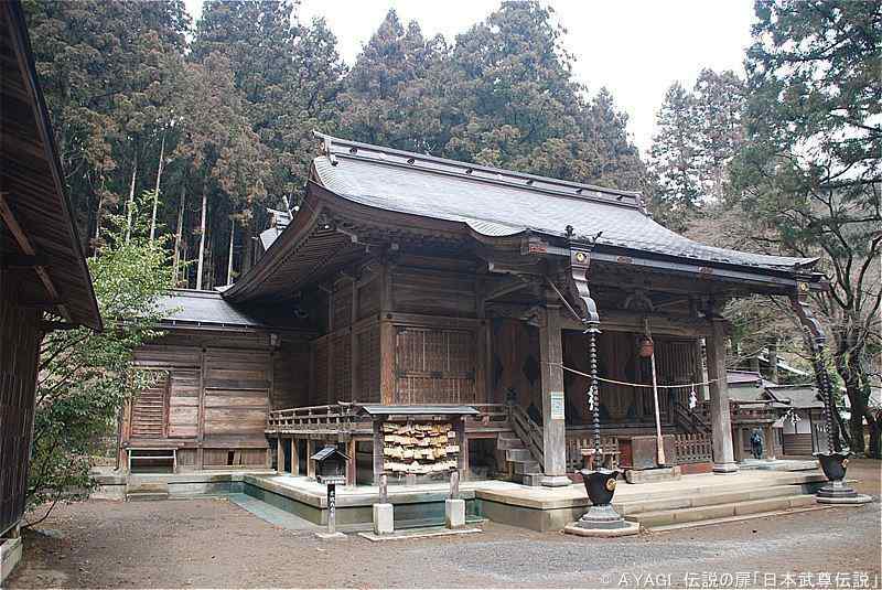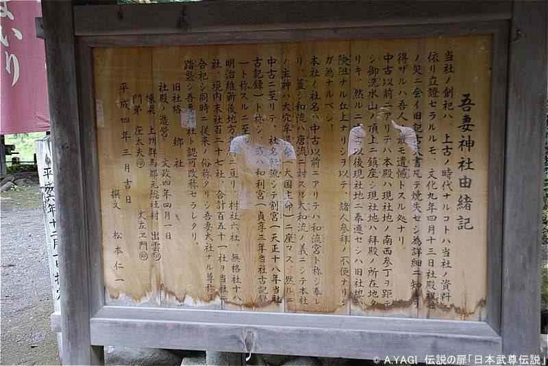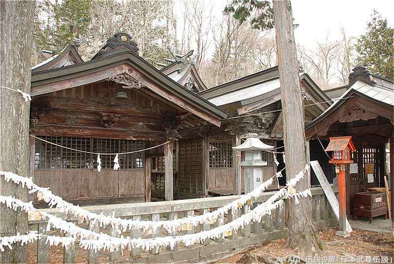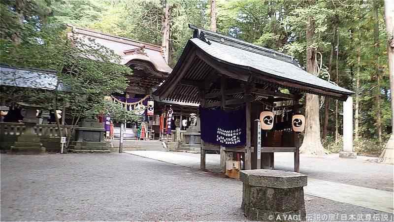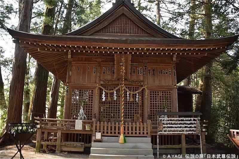この神社はもともと大国主神を産土神(うぶすながみ:土地の守護神)としていましたが、景行天皇の時代に日本武尊を合祀しました。四阿山山頂に奥宮があります。