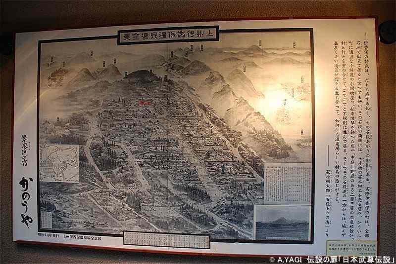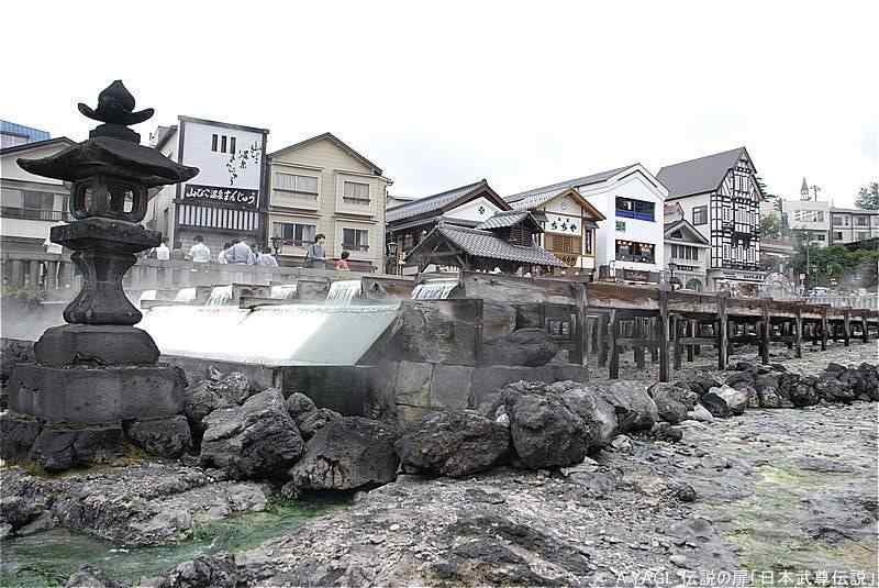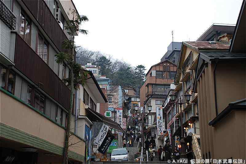 榛名山の東麓に位置する伊香保温泉は草津温泉と並ぶ群馬県を代表する温泉で、万葉集にも登場する古い温泉地です。垂仁天皇の時代に発見されたという説もあり、それが正しければ日本武尊軍もこの近くを通過しているかもしれません。かつて伊香保という地名は榛名山地域を含む広い範囲を指していたようです。戦国時代には長篠の合戦で負傷した兵の傷を癒すため武田勝頼が真田昌幸に命じて整備させました。伊香保温泉地のシンボルともなっている石段はこの時に造られたと言われています。