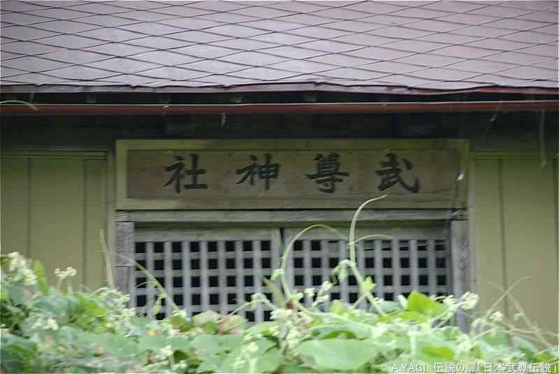 64号沿いに鳥居が見えましたが、参道を草が生い茂り、鳥居から本殿まで行くのが困難だったため、道路からの参拝となりました。鳥居額に武尊の文字が見えます。