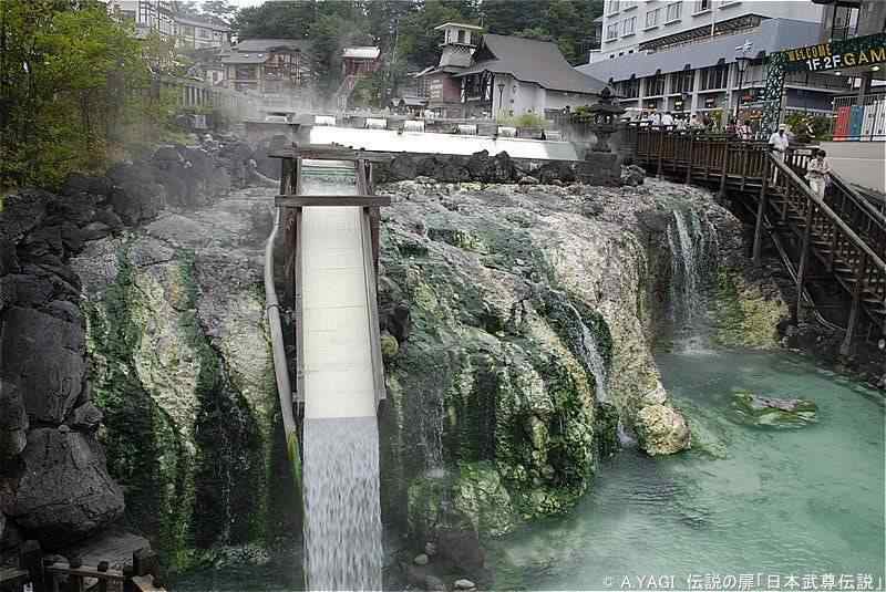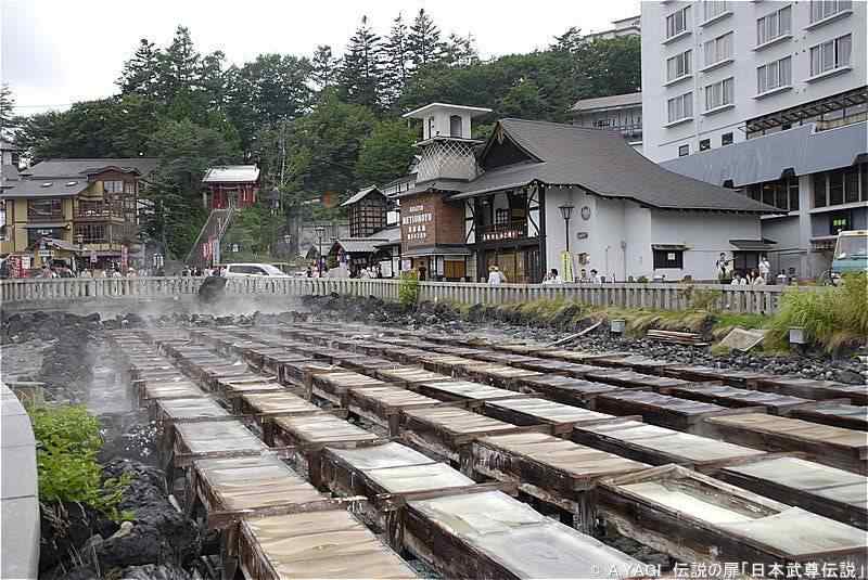 草津温泉は日本三名泉の一つで、昔から多くの人が湯治に訪れている温泉です。白根山の東に位置し、硫黄の臭いが強いため「臭い」からついたとも言われていますが「草津の湯」として親しまれています。由緒については諸説あるようです。