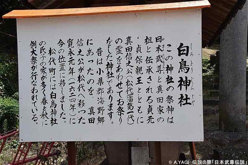 松代潘初代藩主の真田信之が海野郷の白鳥神社を勧請したと伝わっています。