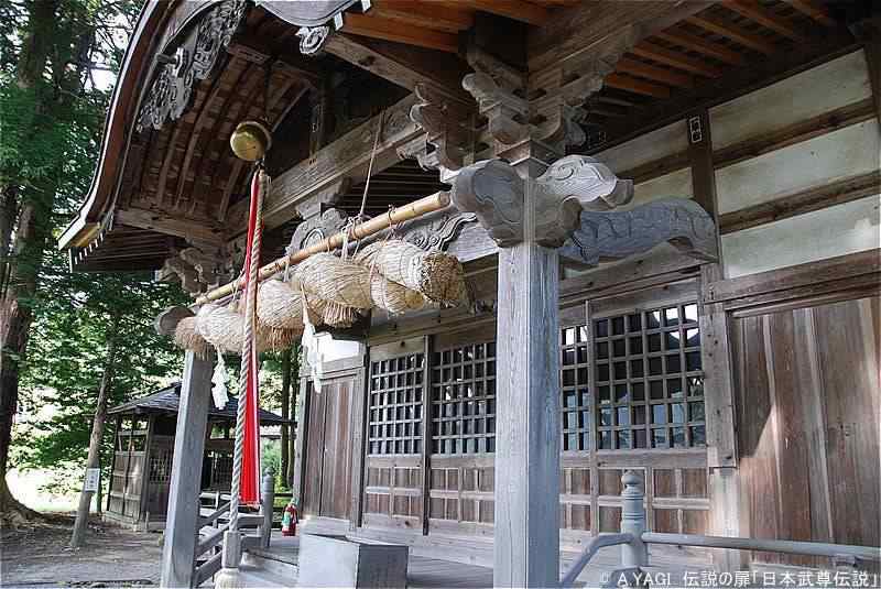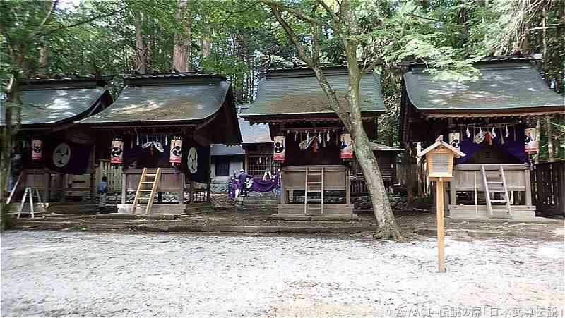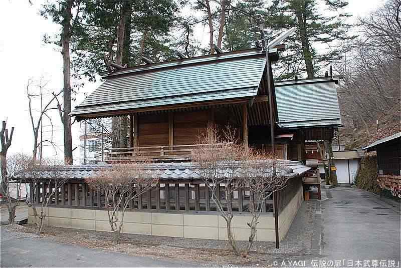 祭神は建御名方命(たけみなかたのかみ)、八坂刀女命(やさかとめのみこと)等で日本武尊も祀られています。