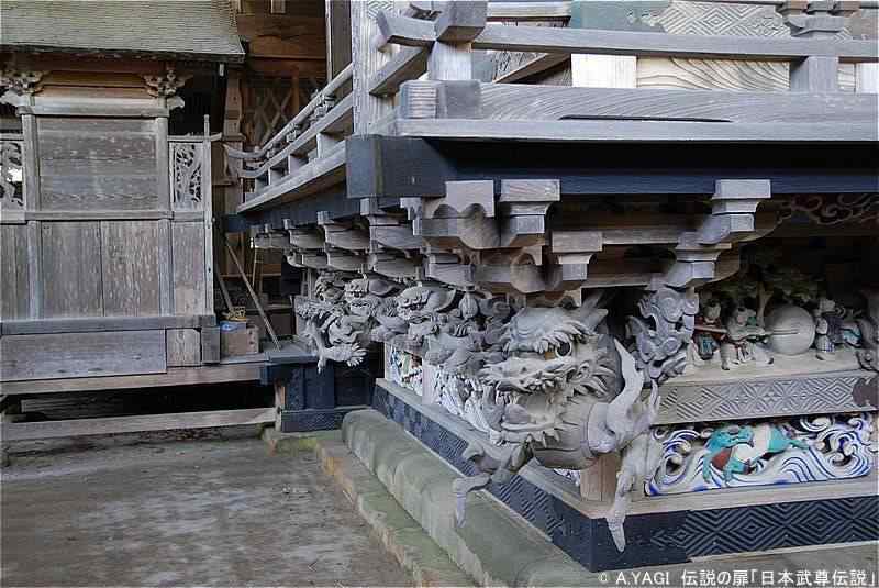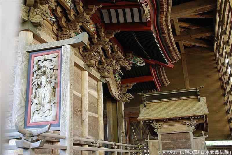 日本武尊への熱い信仰により尾張の熱田神宮から形影を迎えて産土神として祀りました。本殿の周りは豪華な彫刻で飾られています。『長野町村誌 長谷村』には祭神を日本武尊とする熱田八劔社と書かれています。