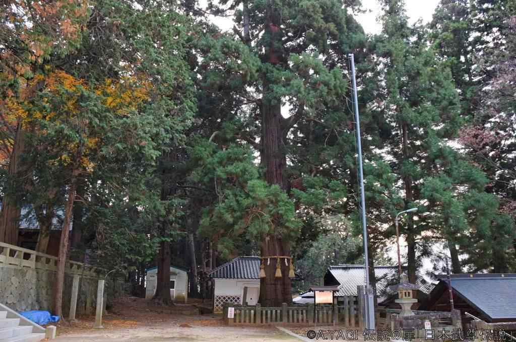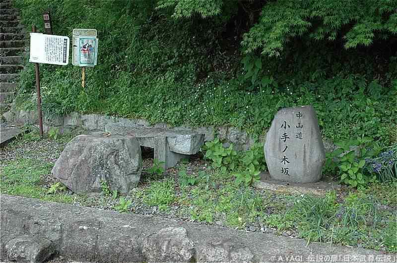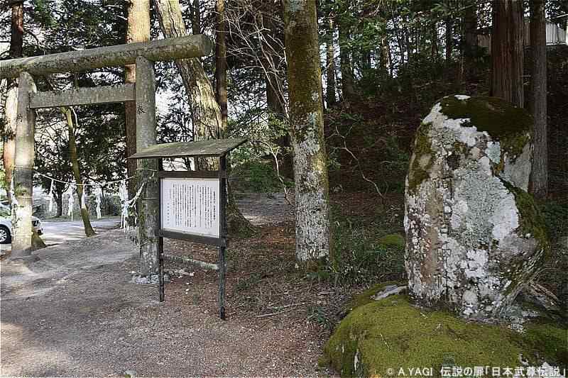神坂神社の境内には日本武尊の腰掛石があり、ここが休息地と伝えられています。また、境内の杉の木は日本武尊が食事をしたときに使った箸を地面にさしたところ、やがて大きく成長したものと言われています。
