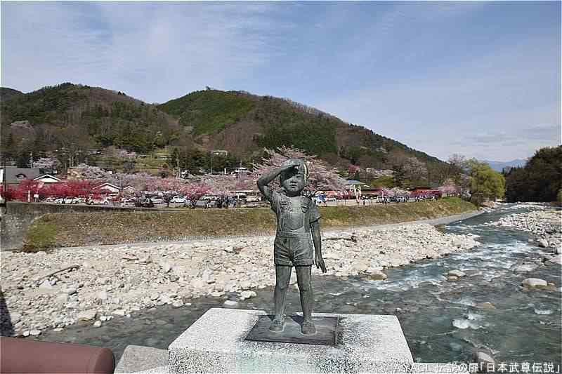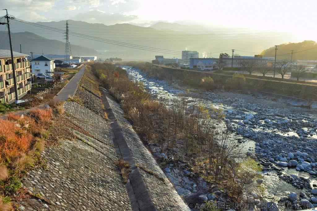 この昔話も史実を脚色して伝えていると考えると、川の流れがやや緩やかになったころ、駒ヶ原に住んでいた者たちが馬の背に日本武尊らを乗せて、自らは川に入って綱を引きながら川を渡ったということのようにも思えます。これは桃太郎に従って鬼(賊)退治(征伐)した猿、雉、犬は実は家来の武将だったと推測することに似ています。これまでも日本武尊は八咫烏や狗などの動物に助けられていますが、これらの動物は日本武尊を助けるためにやってきた地元の勇者であったろうと考えています。後世に史実を伝えるための話術なのかもしれません。