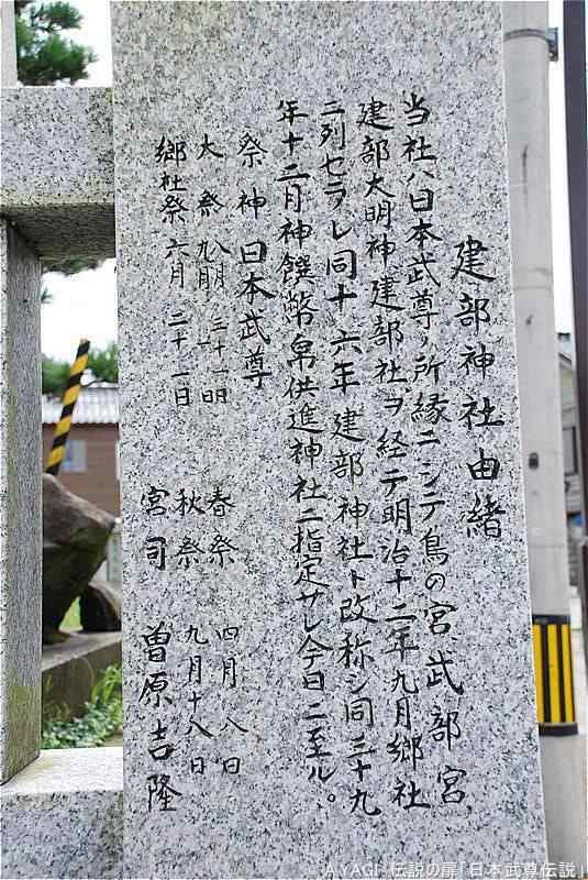 石碑には、鳥の宮、武部宮、建部大明神、建部社と名前の変遷が書かれています。