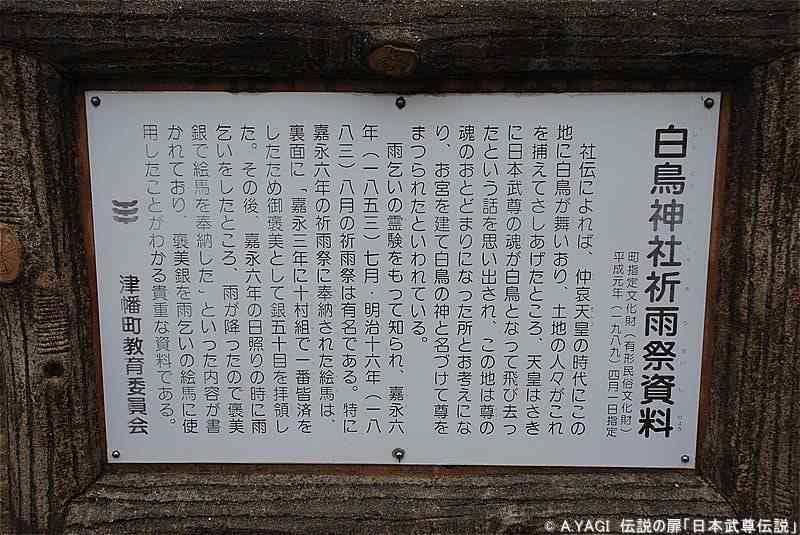 日本武尊を祭神としています。白鳥大明神とも呼ばれていました。