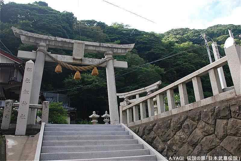 日本武尊が東国平定の際、賊を追いかけて船で越前海岸に上陸し賊を征伐しました。また、この時従者の一人阿部長広という者が持っていた草薙剣がひとりでに抜け出て賊を刺殺したと伝わっています。