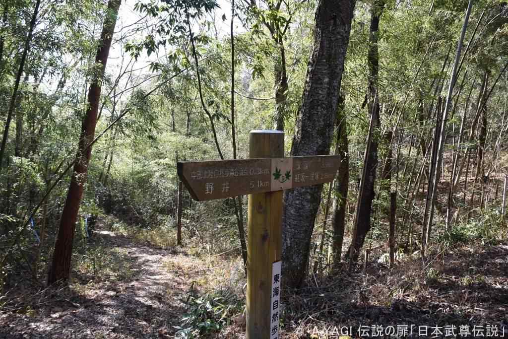 東山道(中山道)で美濃東部に戻った日本武尊は、尾張に向かうため江戸時代に脇街道として整備される下街道に入りました。下街道は日本武尊が通ったことで始まったともいわれています。現在中山道から下街道への別れ道となっているのは岐阜県恵那市武並町竹折 にある槇ケ根です。ここに道標があります。
