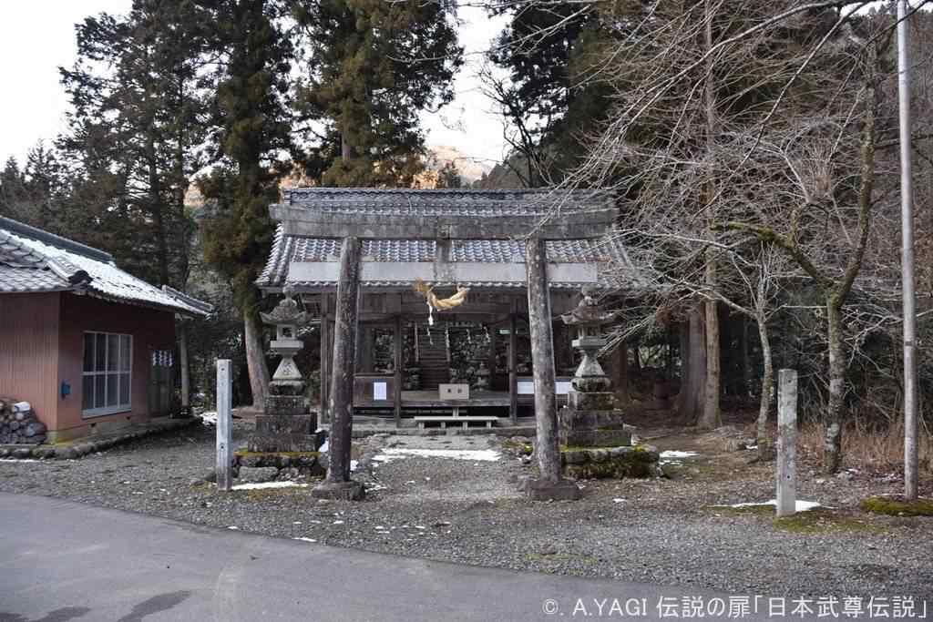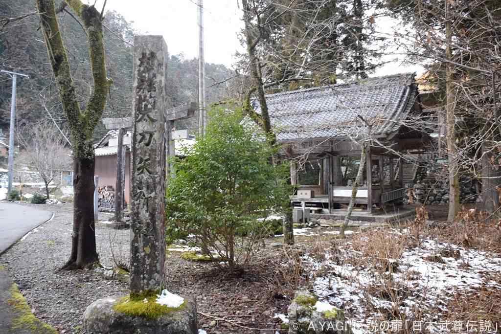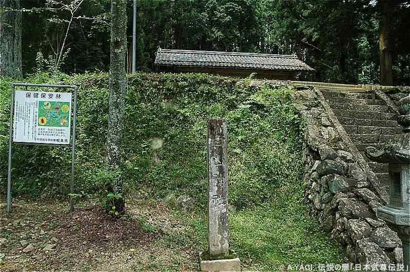「内宮柿野明神」「東宮」とも言われていました。ここに大碓命がひっそりと住んでいた館があったところではないでしょうか。岐阜県神社庁が公開している由緒を見ると「字戸立の渓谷に四方巌にて戸を廻らしたる如き所有り」とされ、そこが館跡のようです。後に大碓命の霊を祀ったのが始まりのようです。